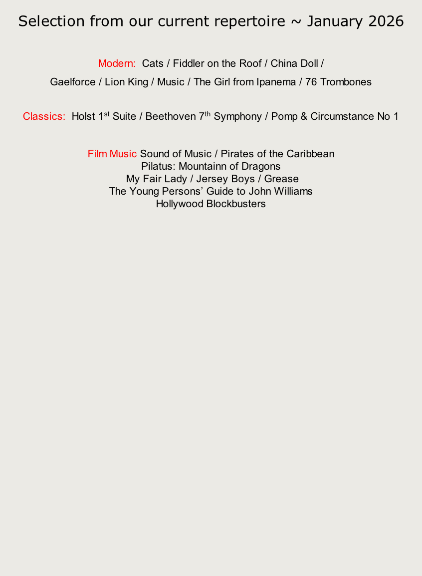 We always welcome new players to the band, but we are especially hoping to recruit clarinet and flute players, and a drum kit player